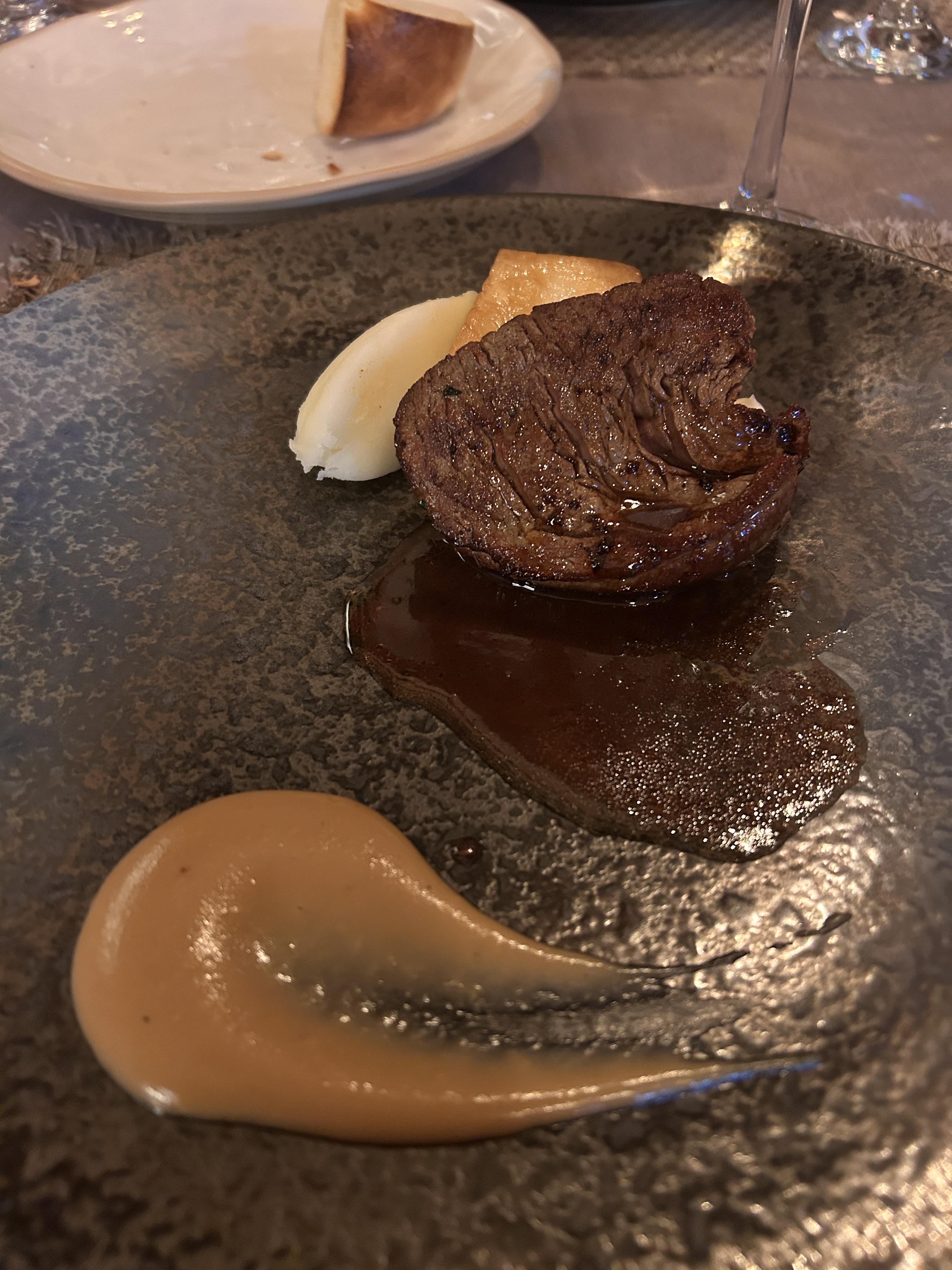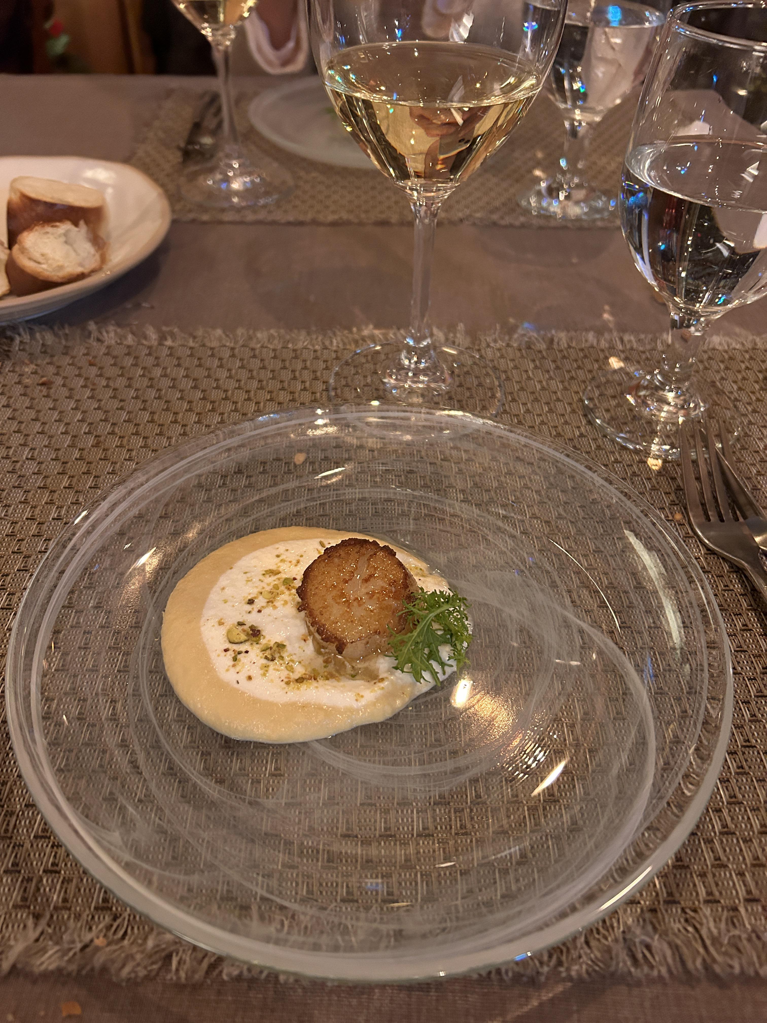 곁들여진 관자구이 입니다. 후무스와 크림이 맛있었는데